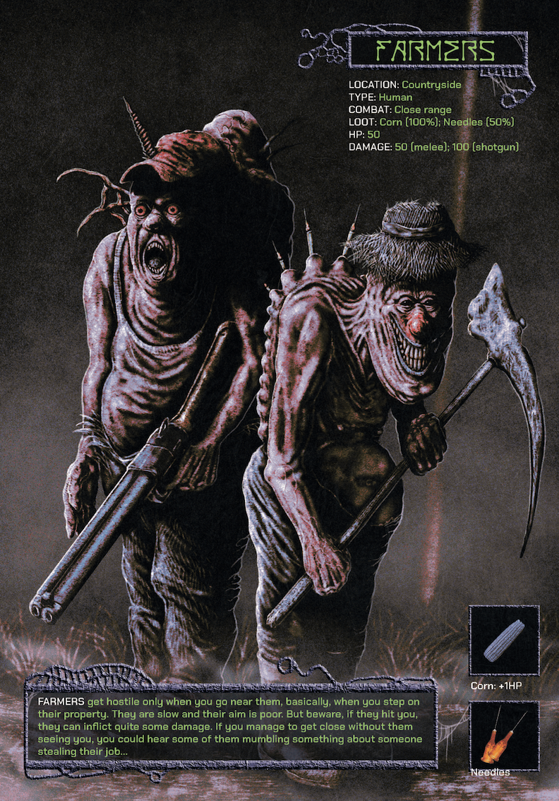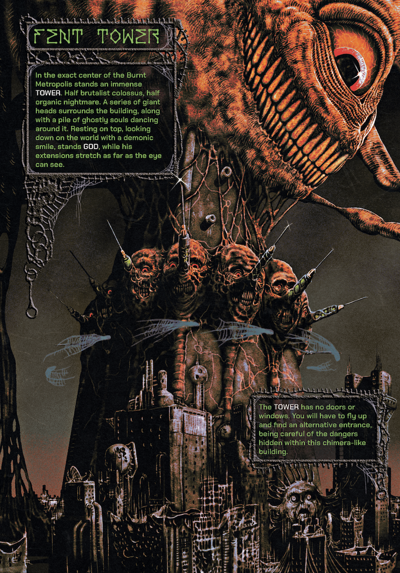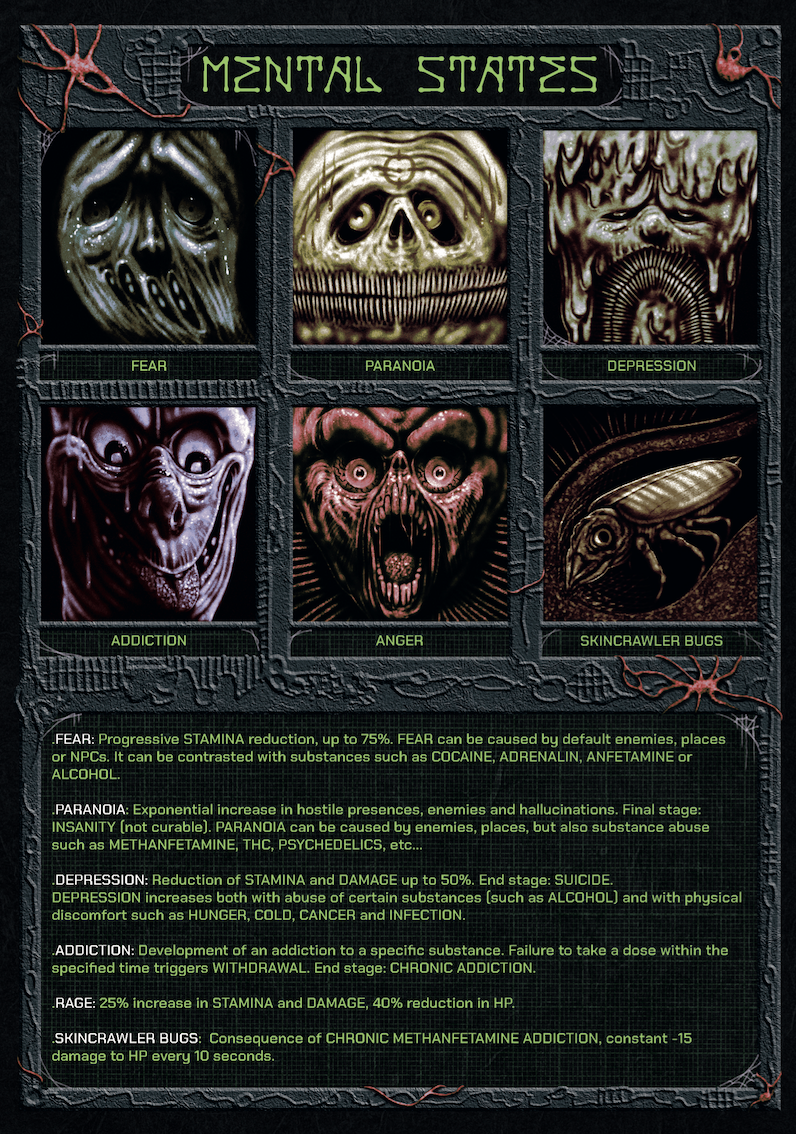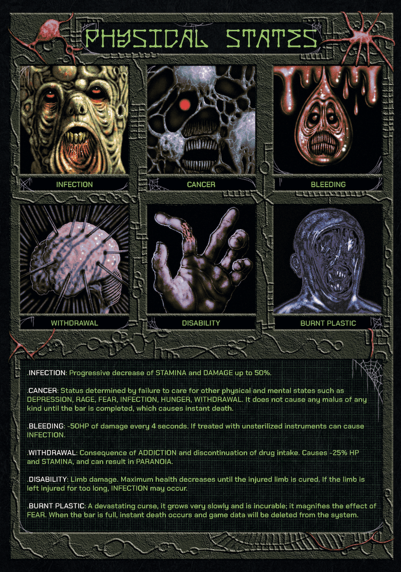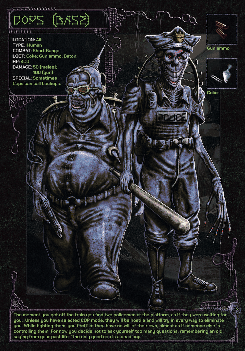 "The air is unbreathable, your nostrils are invaded by an awful smell of burnt plastic. Final Fentanyl will drag you into a chemical nightmare, where reality gives way to states of alteration misguided by fear. Drugs, crazy cops, grinning monsters, and cancerous agents are just some of the obstacles you'll have to face to find your way back to the reality you came from, if it still exists."
